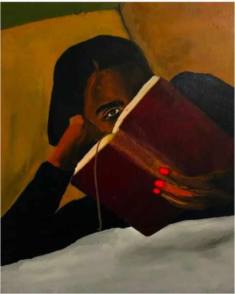 i saw this piece and saw myself. the leisure, the self-involvement. the peek through the curtain — her steely gaze over the book — that compels with a dare.